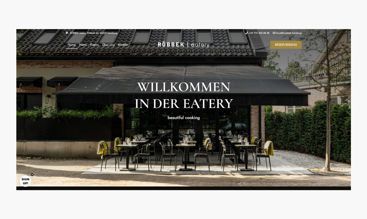 For RÖBBEK eatery, the project involved design and development for their online presence, building upon an existing brand identity. Our focus was to highlight the restaurant's high-quality culinary artistry through a visually driven website, showcasing vibrant imagery of dishes and the inviting atmosphere.